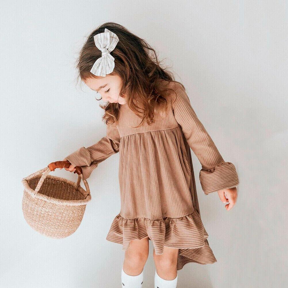 This little girl's dress is the perfect mix of simplicity and style, featuring a solid ribbed design that is both comfortable and chic. It comes in a variety of colors to choose from, allowing you to find the perfect match for your little one's style. Whether you pair it with sneakers or dress it up with some boots, this dress is sure to become a staple in your little girl's wardrobe.
